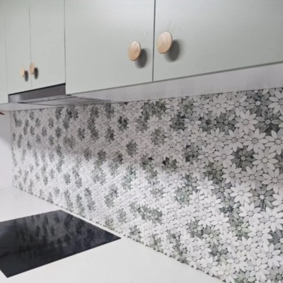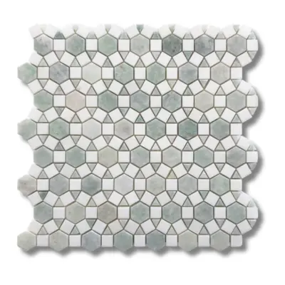 Granada Light Verdi Cristallo Honed & Thassos Mosaic