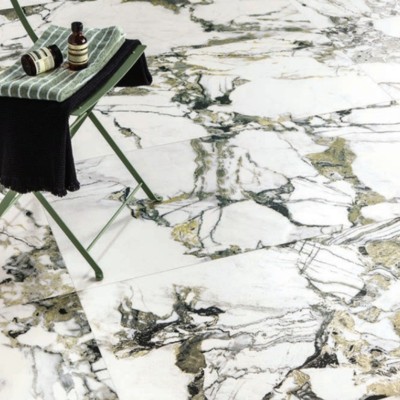 The Luxor range offers marble-look tiles in Rubis and Jade, featuring bold veining and vibrant colour for luxurious walls and floors.