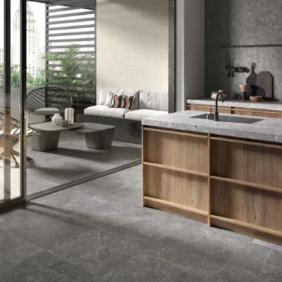 The Sacred Stone range features four colours with soft stone-like veins in matt and grip finishes, ideal for seamless indoor–outdoor walls and floors.