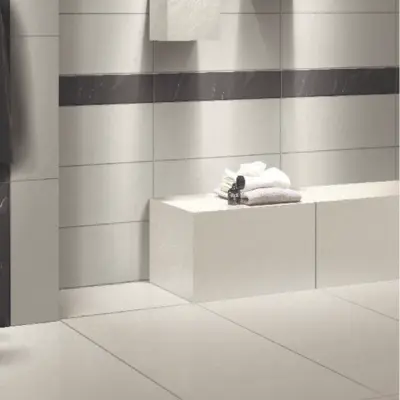 The Sorrento White tile features a high-textured rendered look, perfect for adding depth and character to modern walls and floors.