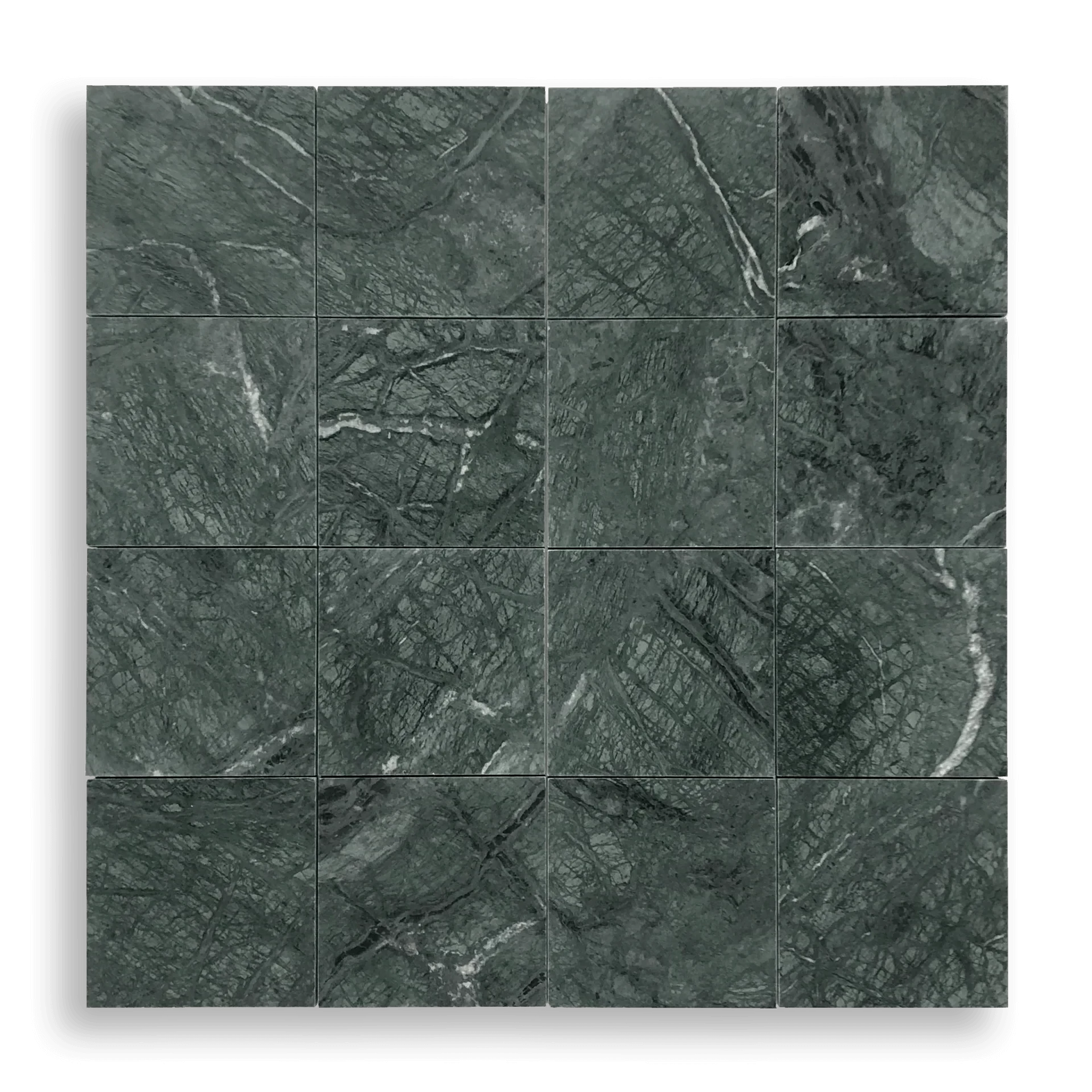 Elementa Taj Green Honed marble tiles feature rich green tones and natural veining, a timeless stone for elegant walls and floors.